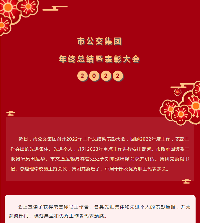 市公交集團舉行2022年度工作總結(jié)暨表彰大會