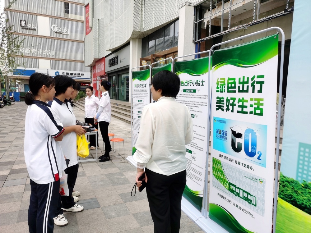 “綠色出行 美好生活”主題宣傳背景墻和公交出行宣展板,展示了荊門公交企業(yè)文化、便民舉措、綠色發(fā)展、服務(wù)提質(zhì)等內(nèi)容,引導廣大市民了解和支持公共交通發(fā)展。