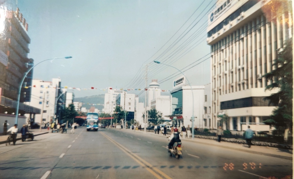 ▲00年代初,荊門市象山一路街景。8路雙層觀光巴士行駛在路上,沿路引來市民觀望,想要乘車體驗(yàn)。當(dāng)年二層車頭座位最搶手。